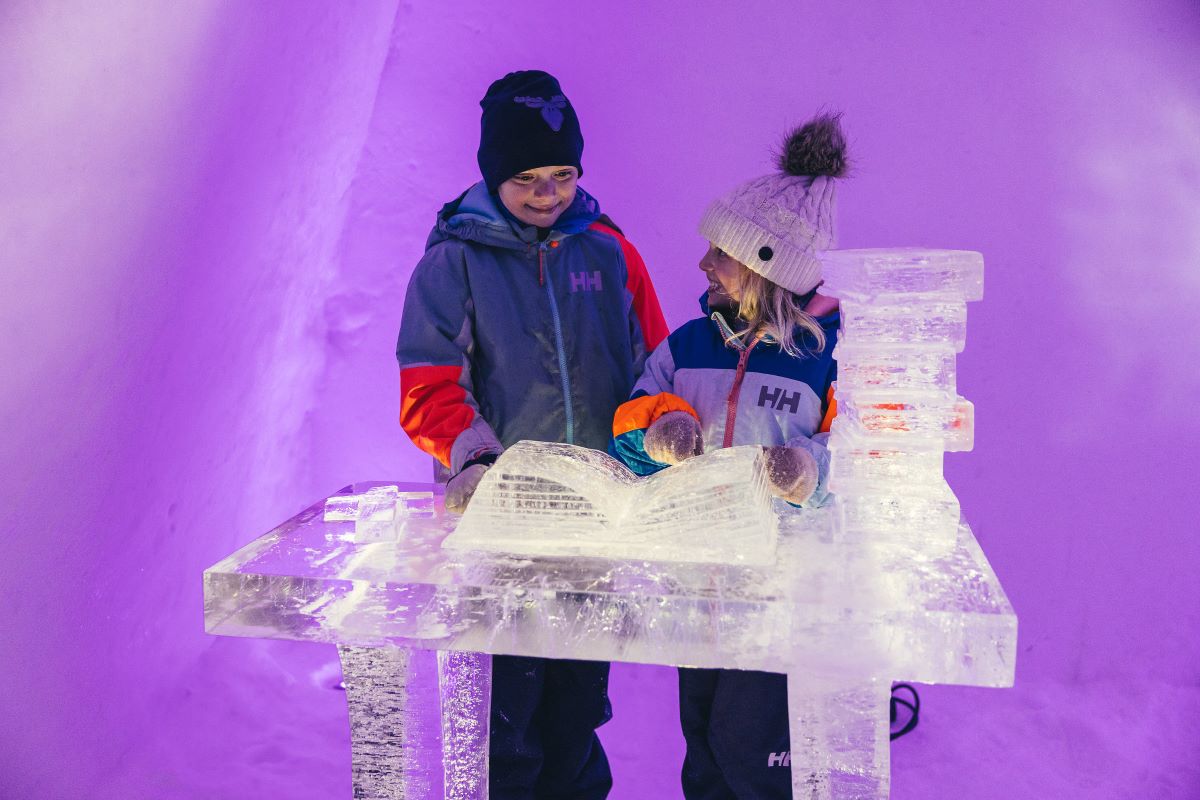 Her våkner eventyrene til live når mørket senker seg. Opplev Iskatedralen, Hunderfossen Snøhotell, Kong Valemon Isbar, spektakulært fyrverkeri og familievennlig underholdning – alt inkludert i inngangsbilletten.