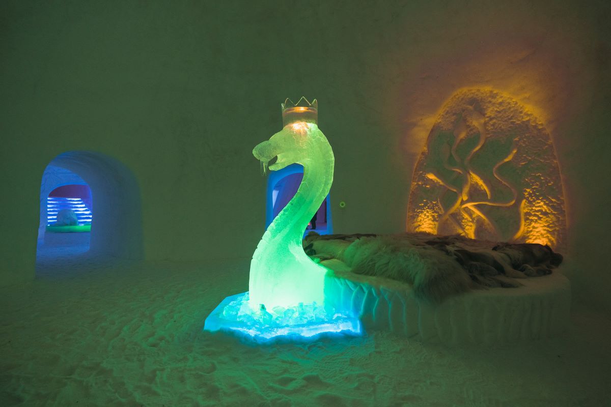 Overnatter du i Skandinavias sydligste snøhotell sover du på reinskinn oppå senger hugget av snø, innrammet av isvegger som glitrer i blått lys. Opplevelsen er magisk: Vinterluften frisker opp lungene, og stillheten er total. Frokost er inkludert i varmestuen ved siden av. Dette er drømmetoppen for romantiske getaways i Norge eller som unik opplevelse på reisen.